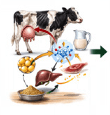 A la vez, garantiza la síntesis láctea, teniendo una gran importancia en el metabolismo energético al inicio de la lactación.
