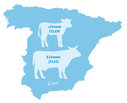 En España, según los últimos datos del censo publicados en el Panel Situación Sector Lácteo de España, hay 752.659 hembras de más de 24 meses y 253.412 novillas entre 8 y 24 meses, lo que representa una disminución del 2,4 % con respecto al año pasado.
