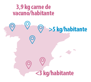 El consumo de carne de vacuno per cápita en los hogares españoles se situó en 3,9 kg por habitante.