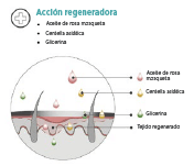 Favorece la cicatrización y regeneración de las heridas superficiales.