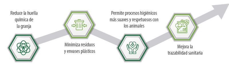 El uso de HOCl permite un control de patógenos externos sin riesgos para el medio ambiente ni para las personas operarias. |