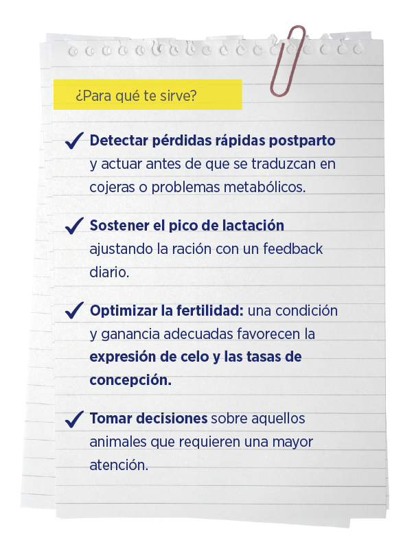 En las ganaderías de leche, el peso es un indicador temprano de condición corporal.